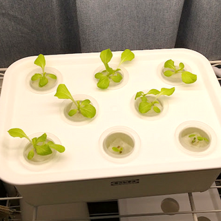 はあとふる農園 日常風景 X Facebook はてブ Pocket LINE コピー 2025.10.21 「はあとふる農園」の実験中。 先月植えたミニレタスが、収穫時期になりました。 いただきます!