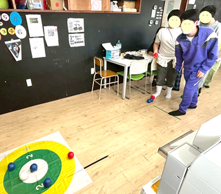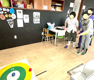 事業所内でスポーツ、みんなで「ボッチャ」を楽しみました。